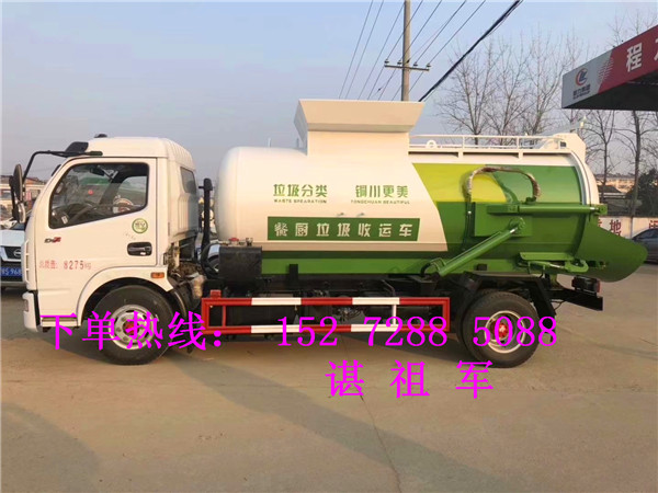 餐厨垃圾车是一种新型的环卫垃圾车,桶装“泔水”经该车输送带缓慢上输,在车顶部倒入车厢内(车厢可分为厢体和罐体),固液分离,其改装部分具有装、卸自动化,操作简便,作业过程密封,无污水泄露和异味