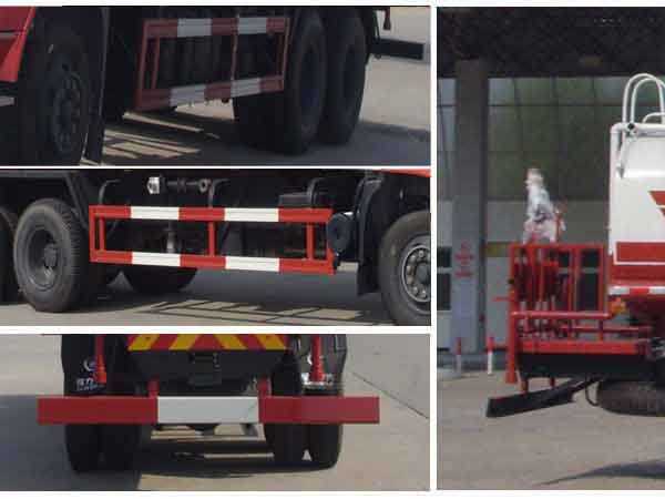 | 专用功能说明 | 1,罐体有效容积16.13立方米,介质:丙酮水溶液,密度:950千克/立方米,当轴距为4350+1300mm时,罐体外形尺寸(长×长轴×短轴 单位mm): 6900×2300×1400;当轴距为4750+1300mm时,罐体外形尺寸(长×长轴×短轴 单位mm): 7300×2250×1350。2,防护材料:Q235A碳钢,连接方式:左右侧面及后下部防护均采用焊接连接,后部防护断面尺寸(mm):150×50,后部防护离地高度(mm):550。3, ABS型号为3631010-C2000,生产厂家为东科克诺尔商用车制动系统(十堰)有限公司。4,文字喷涂位置、车辆颜色及局部细节可变化。 | ||