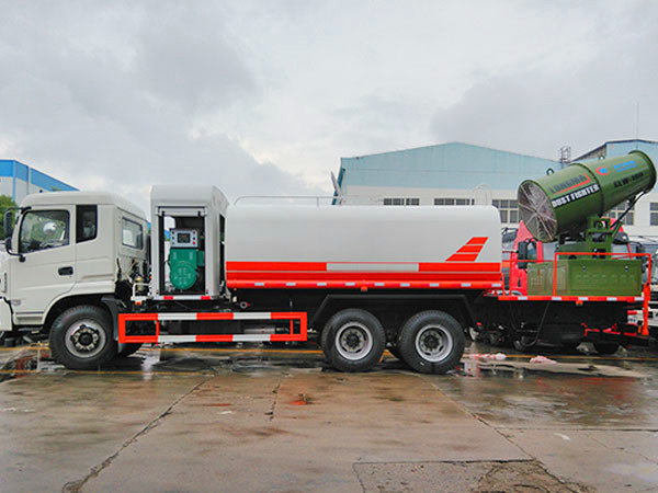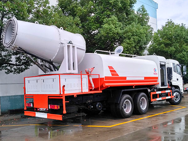 国五东风专用底盘16方多功能抑尘车,将服务于铁道部或其他更多领域。主要是火车运送煤炭,用于对每节火车上的煤炭进行固化,形成保护膜,减少污染。喷洒可360度旋转,同时具备洒水车功能,后平台高炮可同时进行旋转。可电子遥控操作。