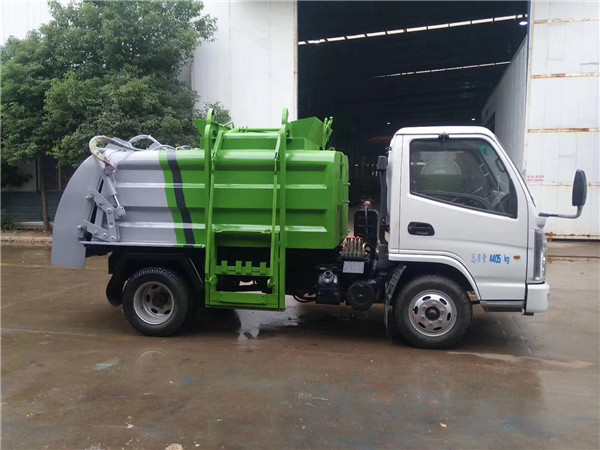 4、 垃圾装载机构:可提升120L、240L的标准垃圾桶,具有自动安全锁止机构,装入过程中桶内垃圾不溢撒,不遗留。垃圾桶在提升倾倒中具有调速功能,以防止垃圾喷溅。