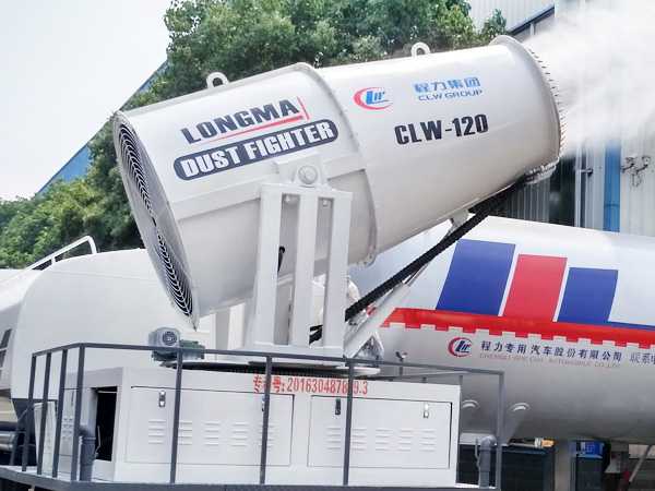 多功能雾炮车,搭载程力专用汽车股份有限公司自主研发生产的雾炮机,兼具绿化喷洒,应急,除尘降尘,喷药消毒等功能,远程遥控,使用方便。